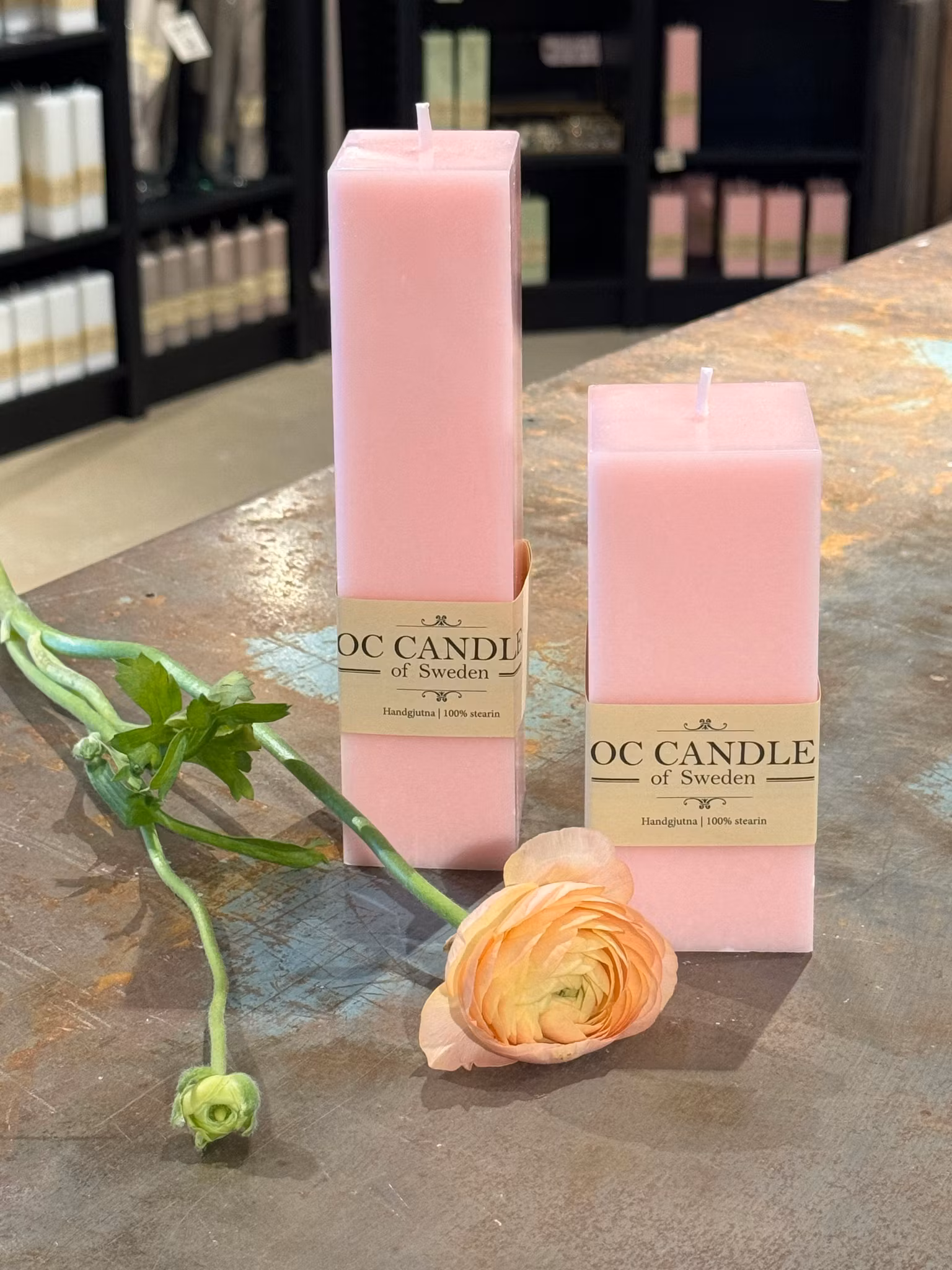 Ett fantastiskt blockljus med kvadratisk form. När det brinner smälter hörnen ner sist vilket gör att det oftast bildas ett vackert nätmönster. Gjuts för hand i 100% stearin, med bomullsveke.