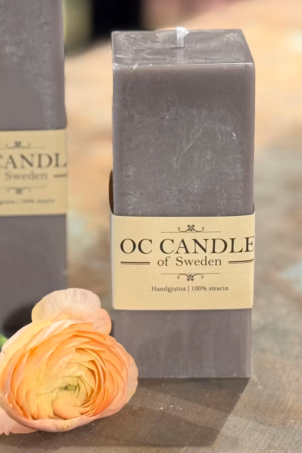 Ett fantastiskt blockljus med kvadratisk form. När det brinner smälter hörnen ner sist vilket gör att det oftast bildas ett vackert nätmönster. Gjuts för hand i 100% stearin, med bomullsveke.