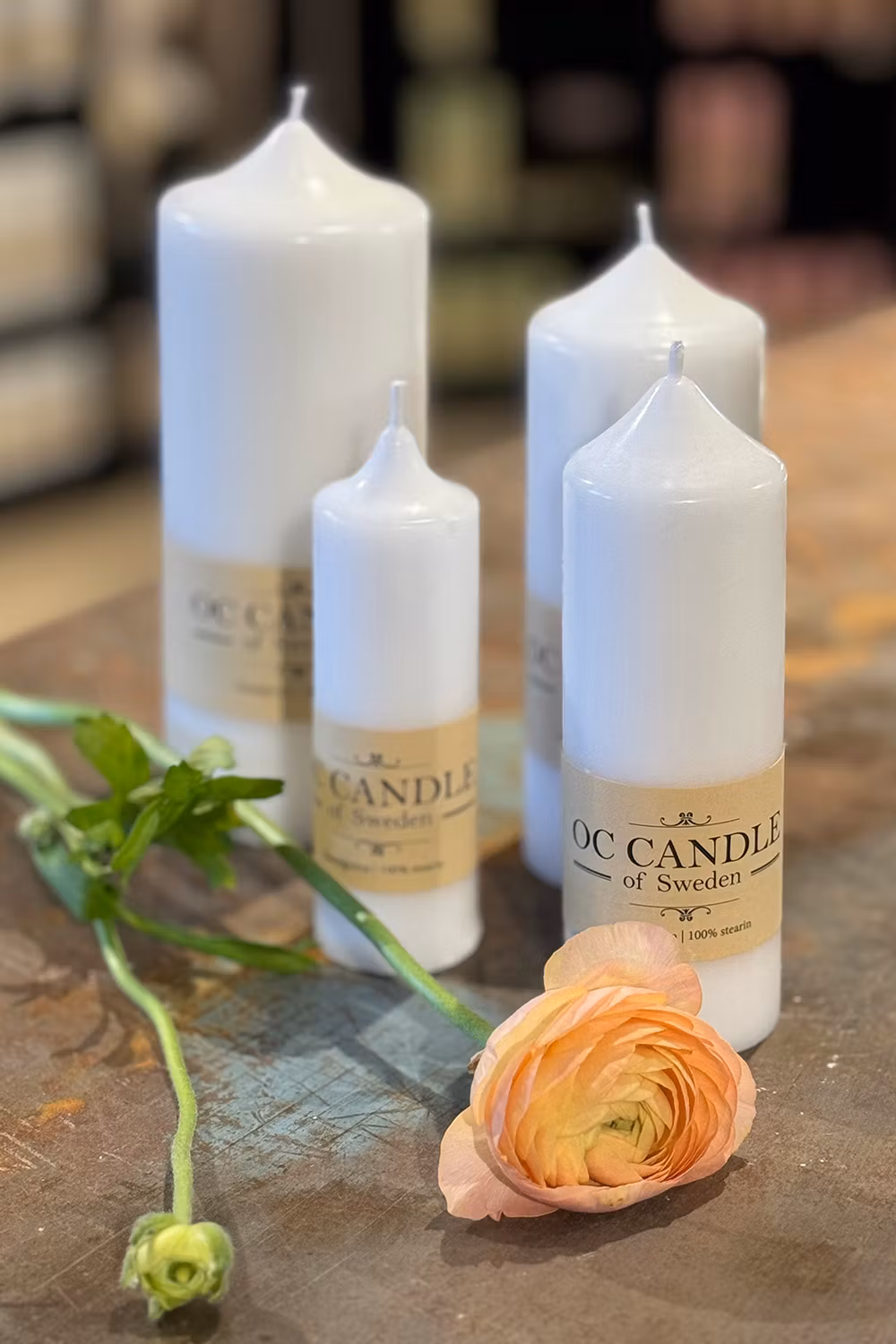 Storlek: 140x60mmBrinntid: Ca 5mm/hFärg: VitMärke: OC Candle of Sweden