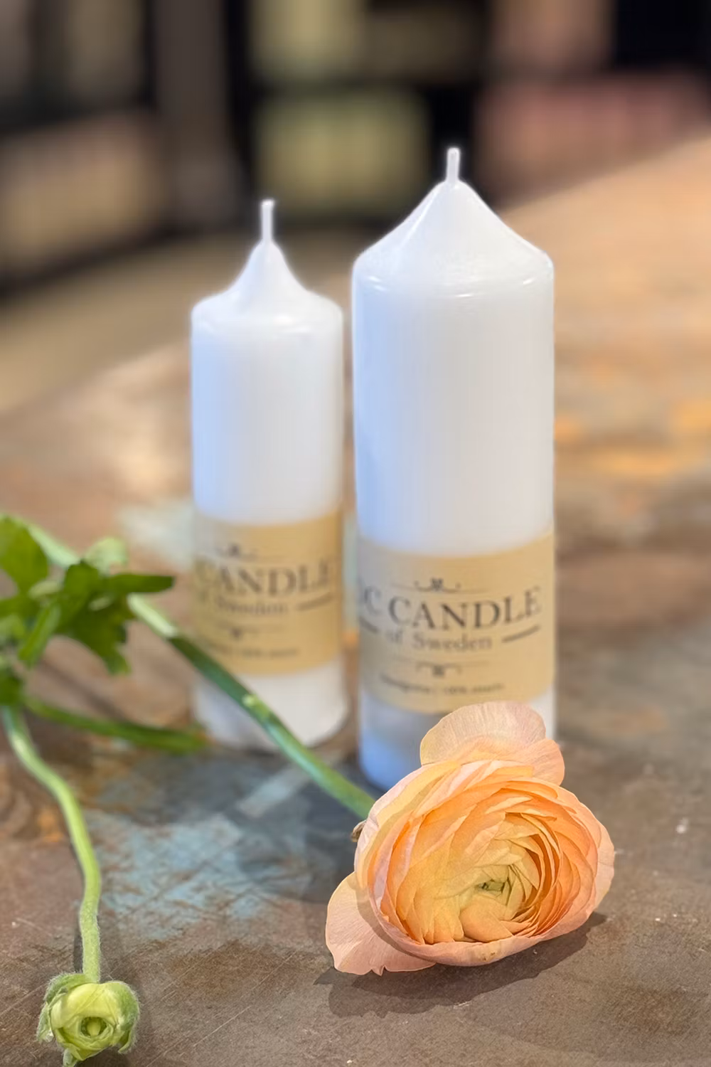 Vårt allra minsta blockljus på 13 cm högt och passar i värmeljusstakar. Handgjutet i 100% stearin och med bomullsveke.