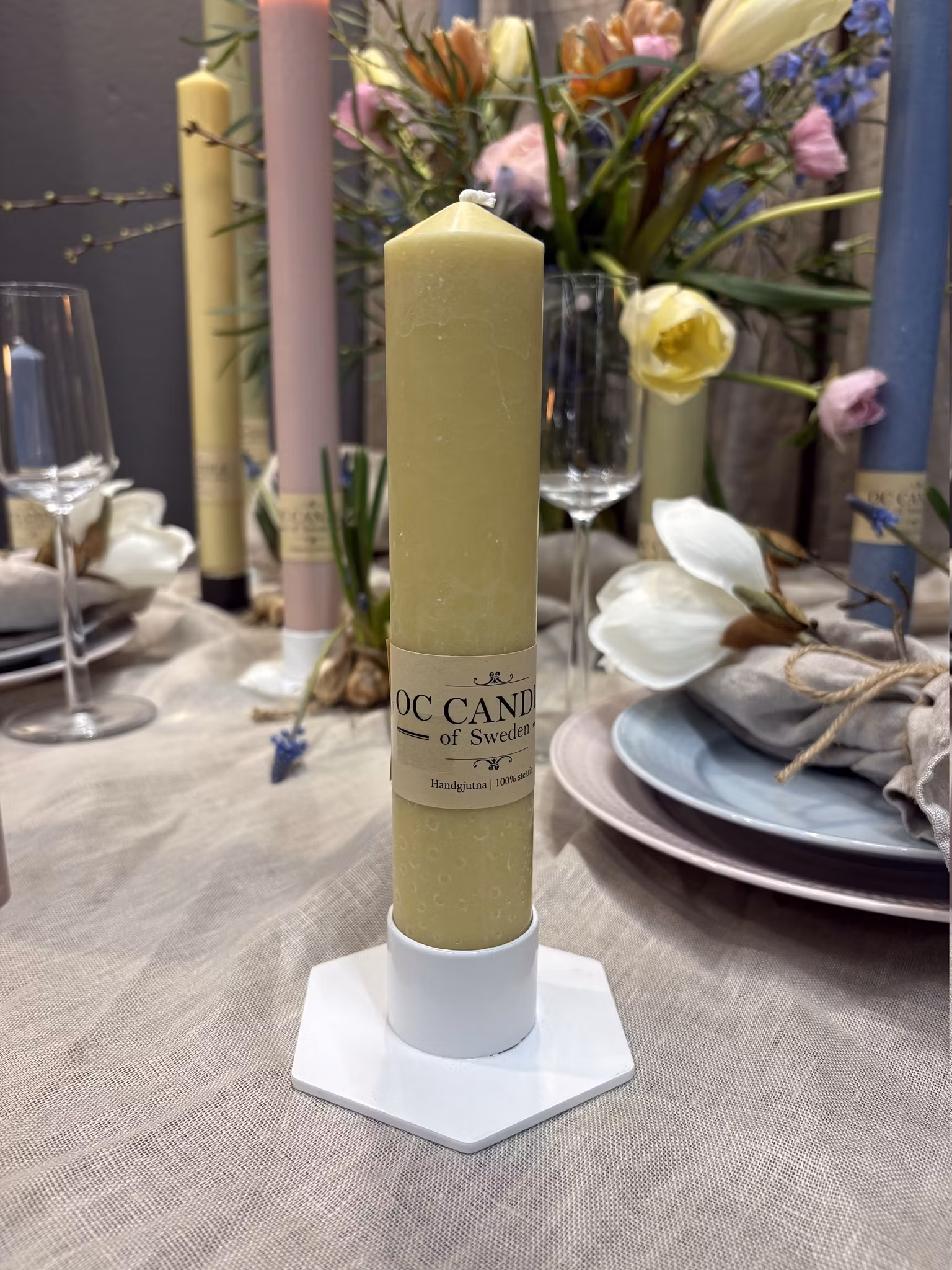 En söt ljusspira, handgjuten i 100% stearin och med bomullsveke. Brinner med stor fin låga.200x38mm och passar de flesta värmeljusstakar. Antal per förpack