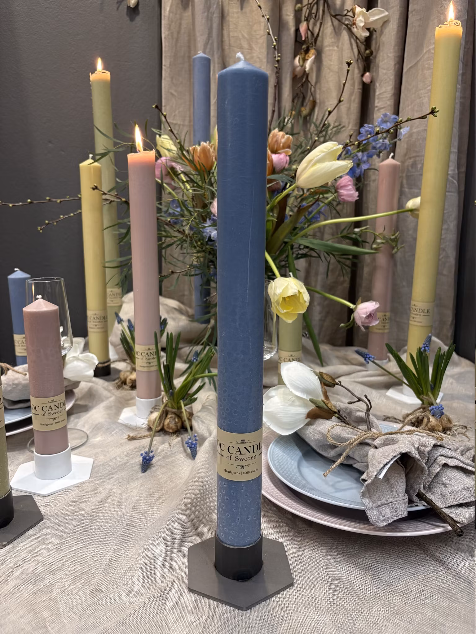 En vacker ljusspira som handgjutet i 100% stearin och bomullsveke. Brinner med stor fin låga.400x38mm och passar de flesta värmeljusstakar. Antal per förpa