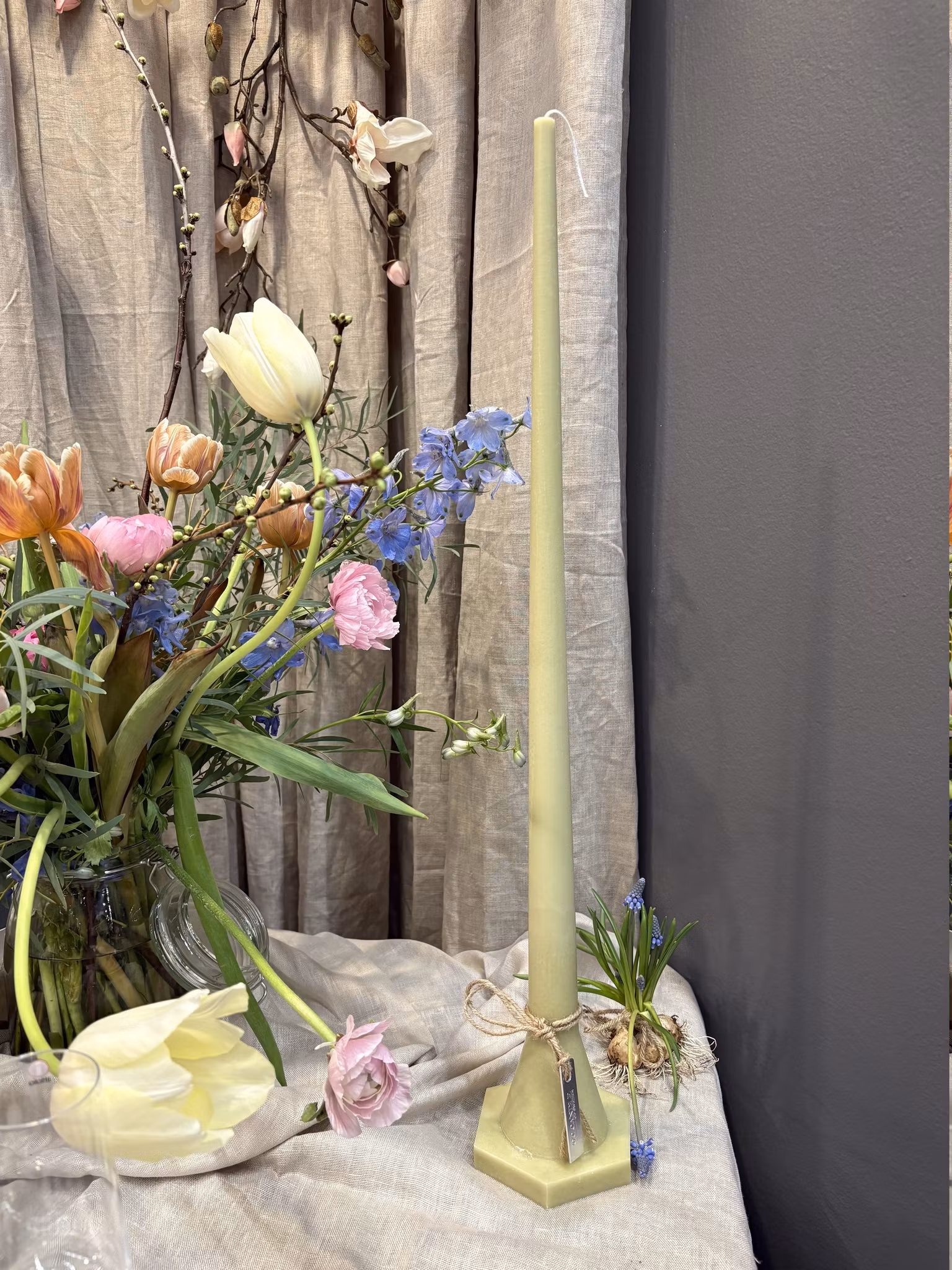 Vårt älskade Viktorialjus, unikt i sitt slag! Gjutet i 100% stearin i ett stycke. Står stadigt utan stake. Vid ömtåliga underlag rekommenderas ett fat unde
