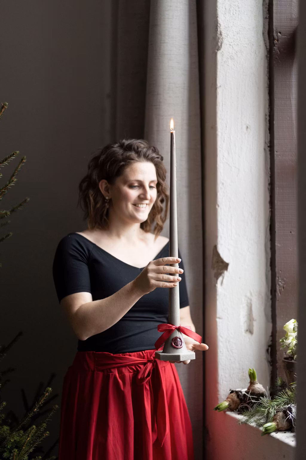 Färg: Mullvad (varmgrå) med juldekor i vax och vinrött band. Lite rustik finish.