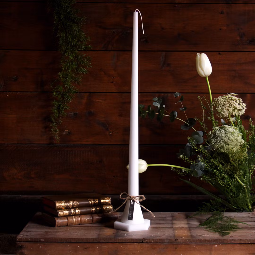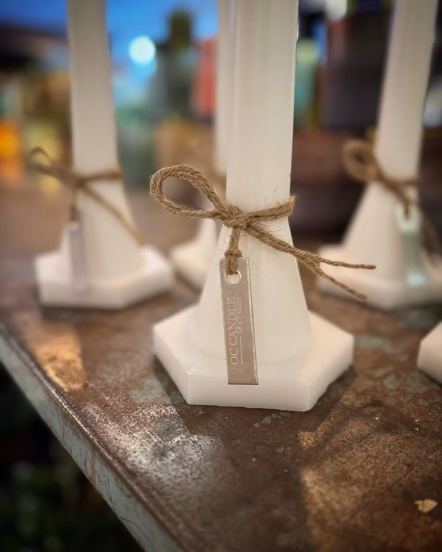 Gjutet i 100% stearin i ett stycke. Står stadigt utan stake. Vid ömtåliga underlag rekommenderas ett fat under ljuset. Ej lämpligt för näthandel.